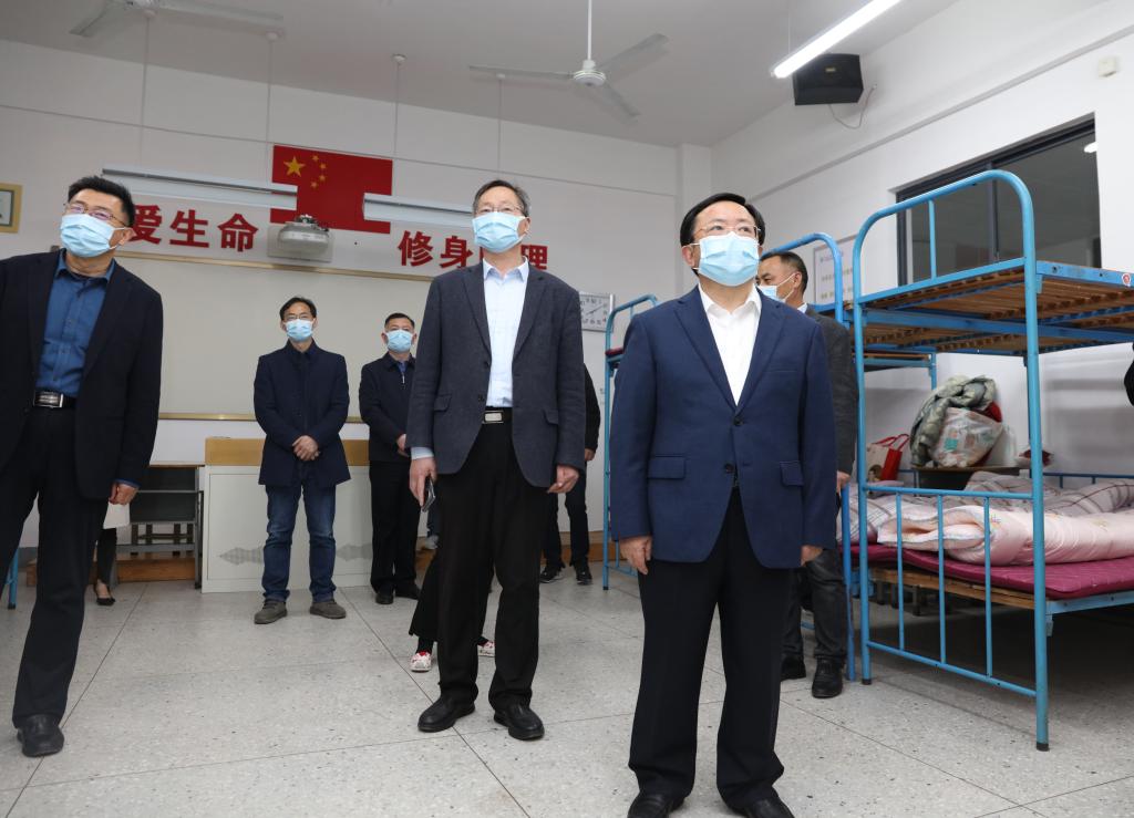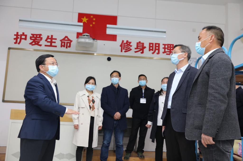 为贯彻落实全省教育系统疫情防控工作调度会精神和市长史志军来校检查疫情防控工作的要求,以及4月6日校党委会暨校疫情防控战时指挥部第八次会议决定,从严从紧落实学校防控对服务外包人员驻校的闭环管理措施;4月7日晚,学校党委书记、新冠肺炎疫情防控战时指挥部总指挥吉文桥带队检查指导校园疫情防控工作,特别是服务外包人员驻校保障安排情况,并看望慰问全部263名驻校服务外包人员。校领导胡海员、陈鸣鸣、曹业慧、朱郁草,党委办、后勤保障部、应急安全保障部、学工部、卫健中心等部门负责人参加活动。
