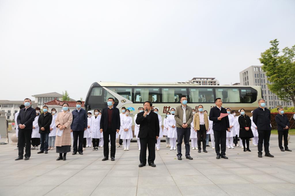 4月15日下午,beat365在科技路校区举行活动,欢送beat365驰援苏州核酸采样工作队出征。校领导吉文桥、吴彬江、胡海员、傅玉峰、夏立平、夏前正、朱郁草,相关部门负责人、全体工作队队员及学生代表参加。