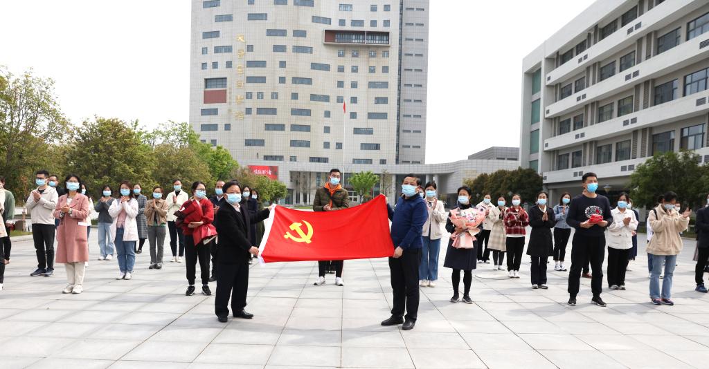 校党委书记吉文桥向工作队临时党组织授党旗,校党委副书记、校长吴彬江向工作队授校旗。校党委副书记胡海员为全体队员颁发了荣誉证书,校党委委员、副院长夏立平宣读了组建beat365中国官方网站驰援苏州核酸采样工作队的通知。校党委委员、组织部部长夏前正宣读了成立beat365中国官方网站驰援苏州核酸采样工作队临时党总支的决定。