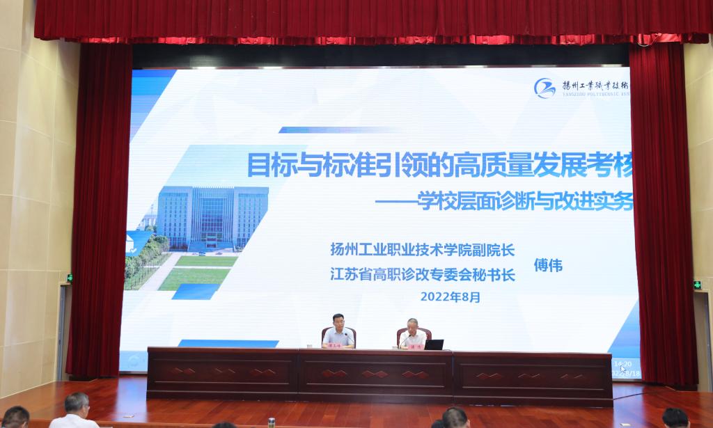 培训班邀请了有关领导和专家开展了多场专题辅导。扬州工业职业技术学院副院长,江苏省高职诊改专委会秘书长傅伟以《目标与标准引领的高质量发展考核——学校层面诊断与改进实务》为题进行专题辅导,对高职院校高质量发展综合考核指标进行了分析说明,介绍了以目标与标准为引领的诊断和改进工作的思路。中国高等教育学会职业技术教育分会理事长,浙江金融职业学院发展咨询委员会主任、原党委书记,二级教授周建松以《高等职业教育内涵建设的逻辑》为题进行授课,从正确合理定位、尊重办学主体、把握办学重点、培育质量文化、争创特色品牌、锻造过硬队伍六个方面讲解了推进高职教育内涵式高质量发展的方法路径。淮安市委宣传部副部长、市委网信办主任曾业桃就高校意识形态管控工作进行了辅导。全体学员还学习了中央统战工作会议精神和《中国共产党统一战线工作条例》,观看了警示教育片。