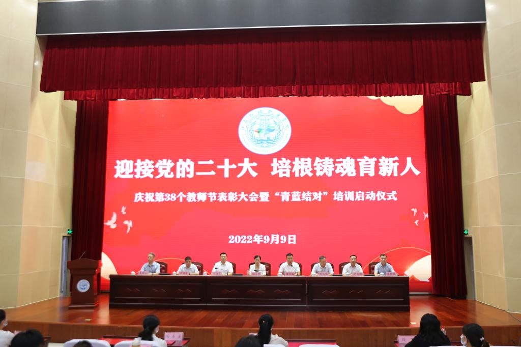 春华秋实,桃李沁香。9月9日下午,beat365举行庆祝第38个教师节表彰大会暨“青蓝结对”培训启动仪式。会议在学术报告厅设主会场,分会场以线上云直播的形式同步进行。在淮校领导出席大会,各二级学院、各部门主要负责人,教授、博士、国赛一等奖团队、受表彰教师、“青蓝结对”教师在主会场参加大会,大会由党委副书记、院长傅玉峰主持。