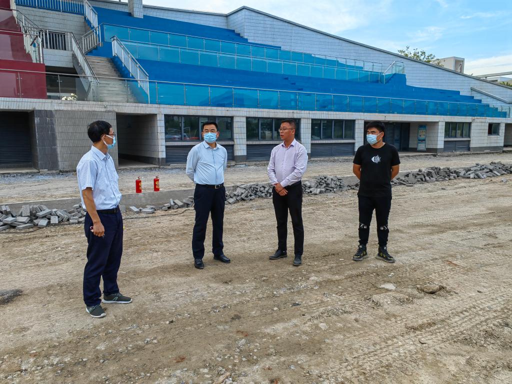 9月22日下午,校党委副书记、院长傅玉峰到科技路校区运动场检查塑胶跑道重建项目施工进展情况。后勤保障部党总支书记曾巨祥等陪同检查。