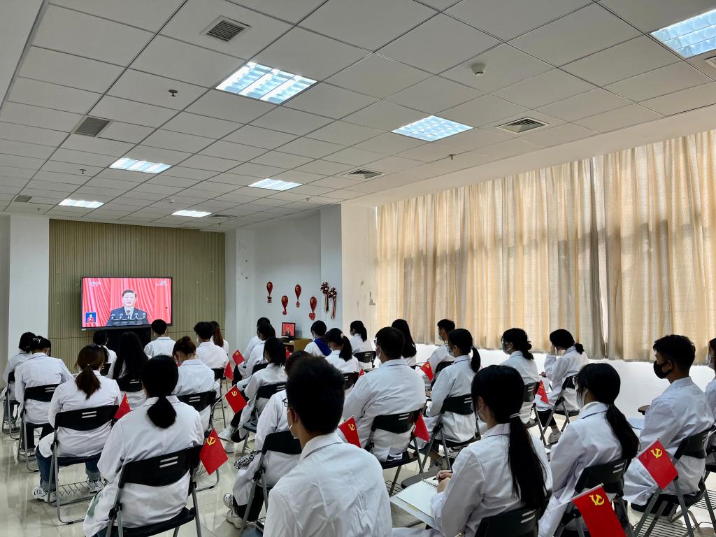 10月16日,中国共产党第二十次全国代表大会在北京隆重开幕。beat365组织副科级以上干部在学术报告厅集中收看开幕会直播,组织学生代表在会议室、教室、驻点医院集中收看。此外,师生们还通过网络、电视、广播等形式自行组织收听收看,认真聆听习近平总书记代表十九届中央委员会向大会作的报告。