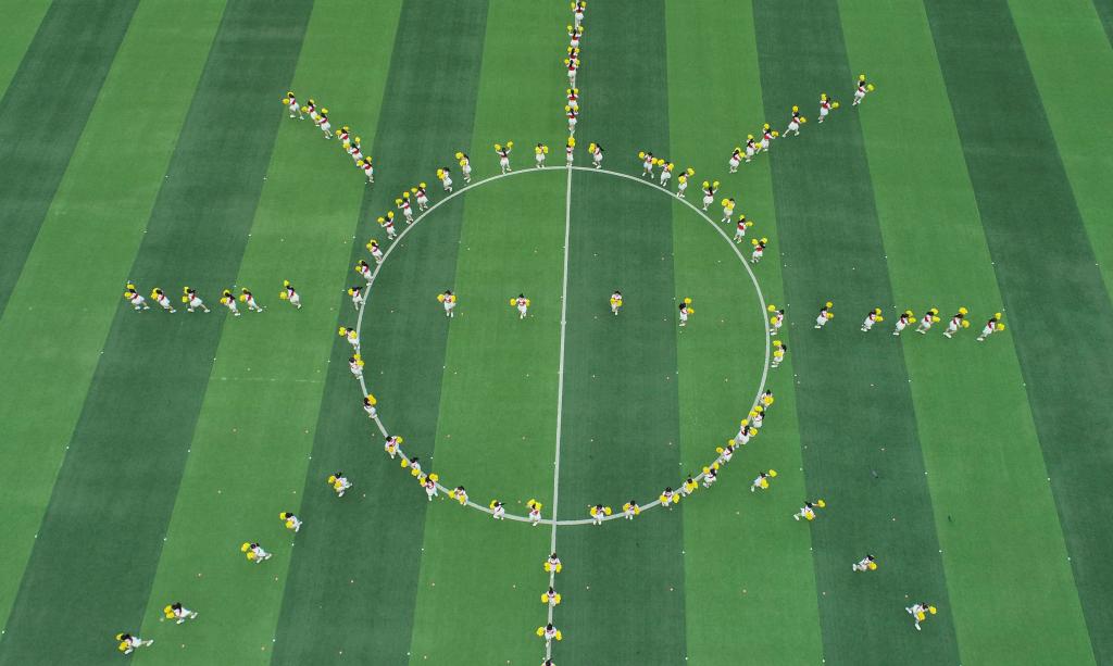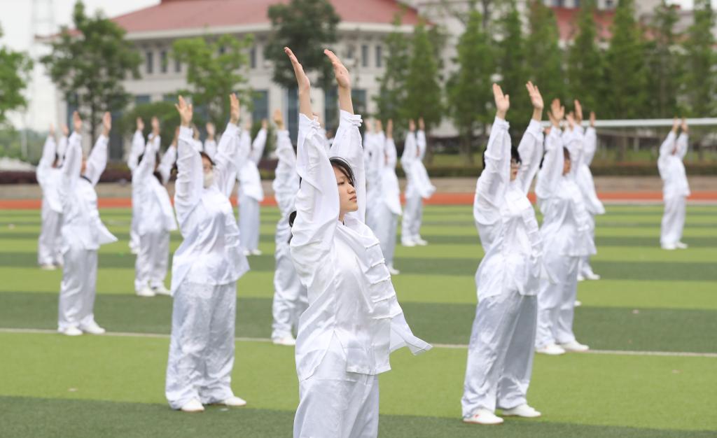 开幕式上,全场师生欣赏了健身气功比赛及啦啦操表演,同学们尽情展现着自己的青春与活力,表达对祖国和学校未来的美好祝福。