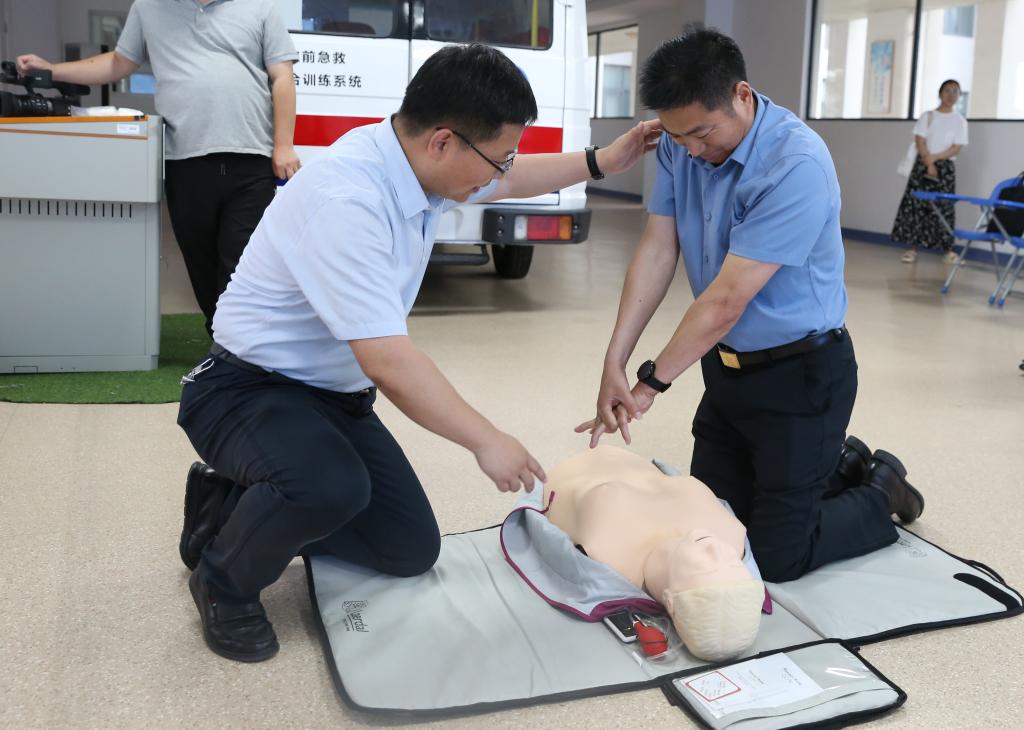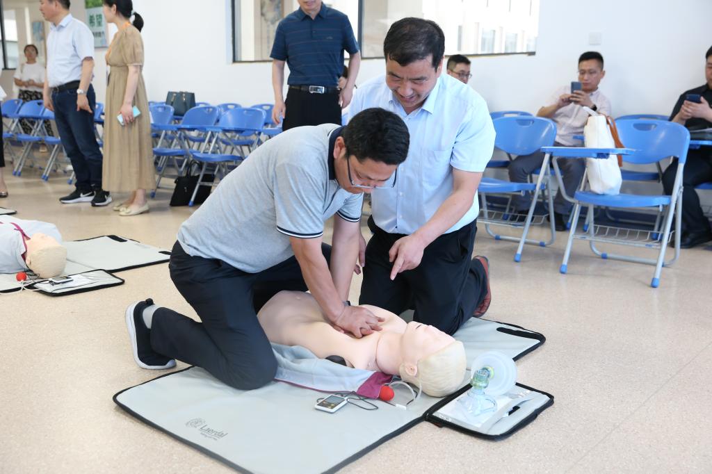 活动现场,李萍一行在2名BLS导师的指导下,学习了心肺复苏的操作流程等,并分组进行练习。