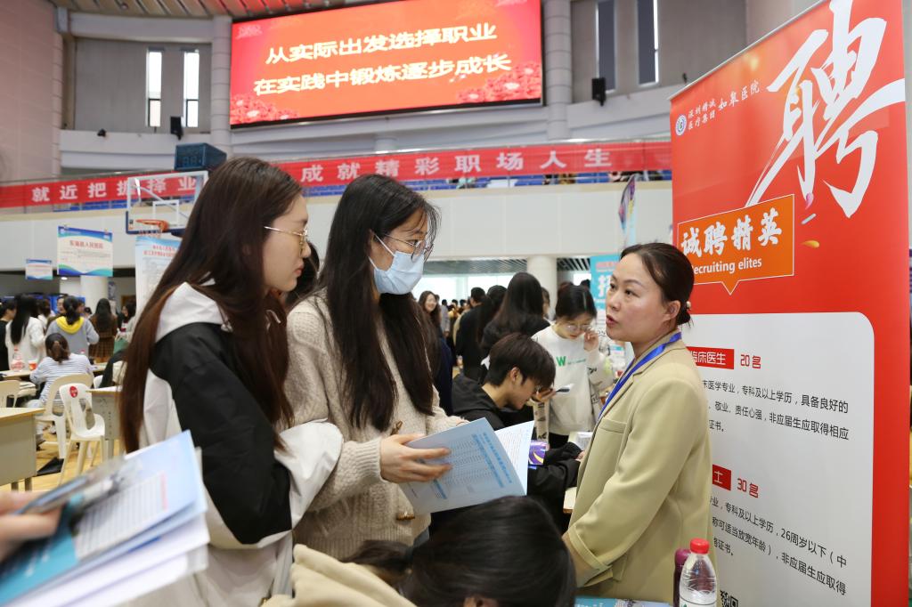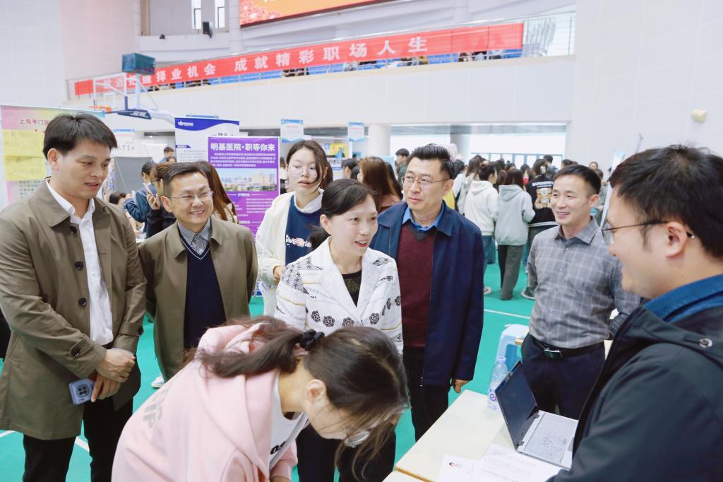 本次招聘会共邀请了来自上海、江苏、浙江、深圳等省市企事业单位参加,涉及护理、药学、康复治疗技术、健康管理等多个专业。据统计,现场近300人初步达成就业签约意向。