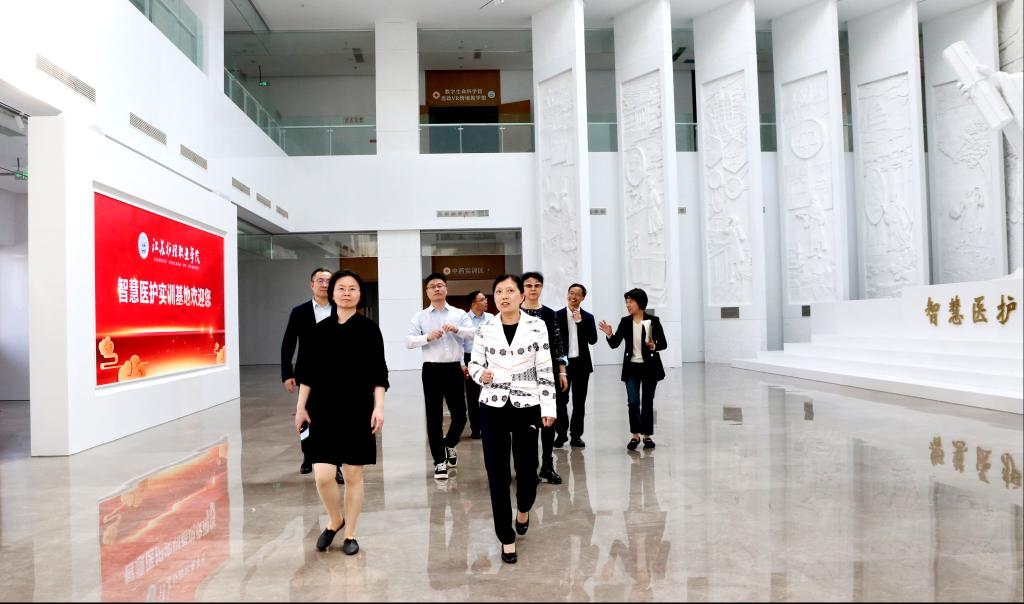 陆志群陪同杨利红一行考察了智慧医护实训基地等实训教学场所,介绍了beat365办学历史以及高质量发展建设的办学成果和发展特色,希望校企双方不断加强深度合作,共同推动人才培养和产业发展,实现资源共享、优势互补和互惠共赢。