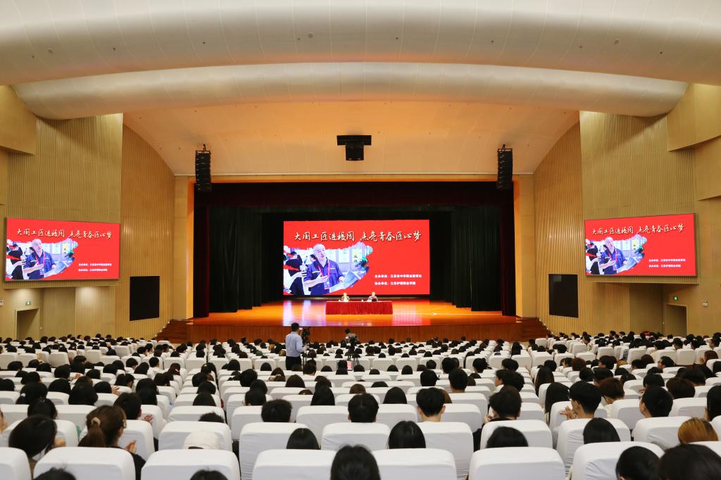 孟维以《大国工匠是怎样炼成的》为主题,分别从“对于劳模精神、劳动精神、工匠精神的理解”“徐工重型这个大平台培育了我”以及“我的成长历程”三方面进行了讲述,分享了在平凡的岗位上不平凡的技能故事,用质朴生动的语言阐述了平凡岗位中的伟大,展示了技能成才、技能报国的感人事迹。他将个人成长与国家机械工业的发展需求紧密联系在一起,最终实现了由一名普通的数控车床操作工到享受国务院政府特殊津贴的“大国工匠”华丽蜕变,用奋斗与拼搏诠释了何为“大国工匠”。他生动的事迹讲述,赢得了现场师生的阵阵掌声。