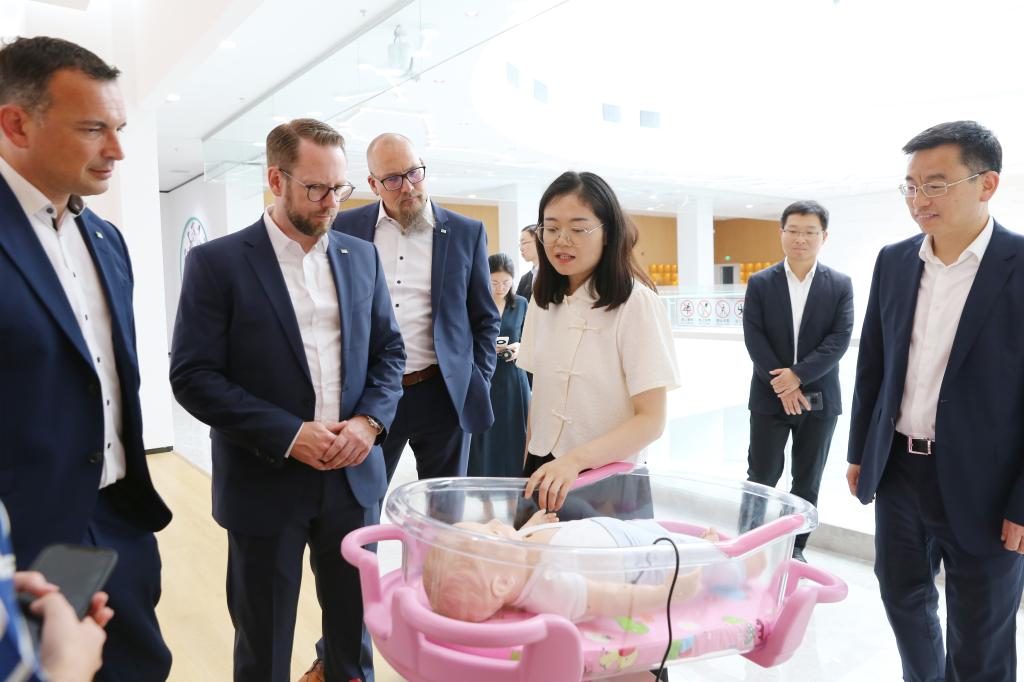 在校期间,德国维尔茨堡大学阿莎芬堡附属医院考察团一行观看了学校宣传片,参观了beat365智慧医护实训基地。