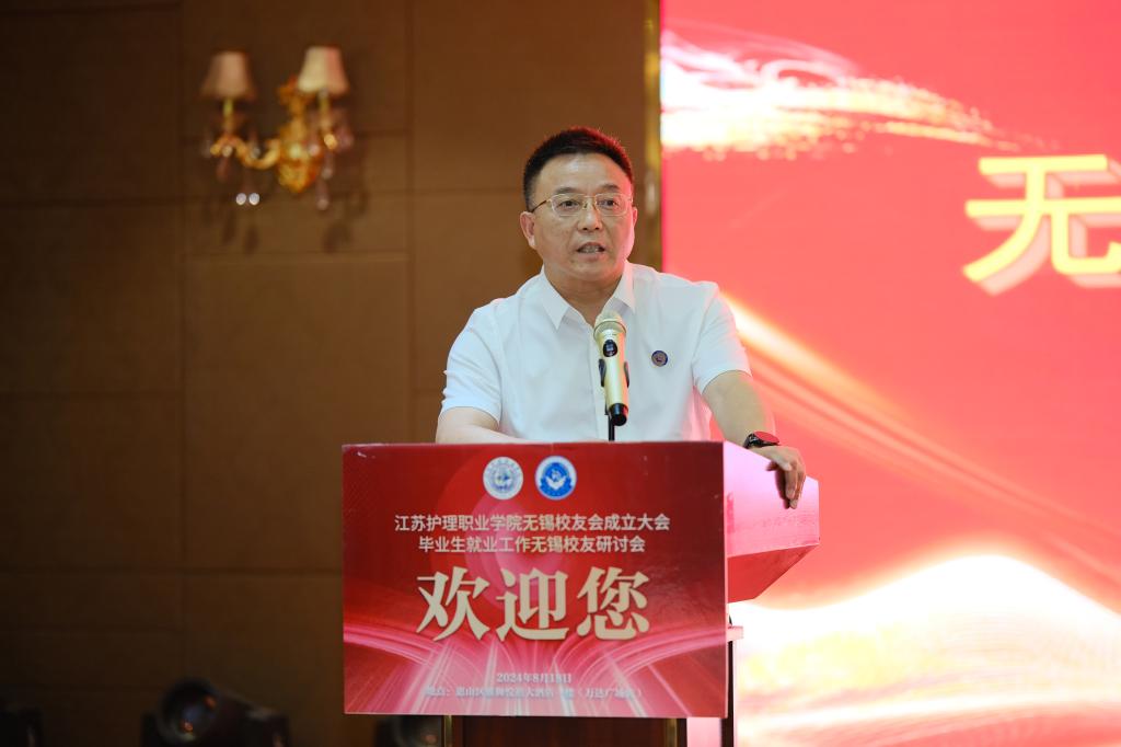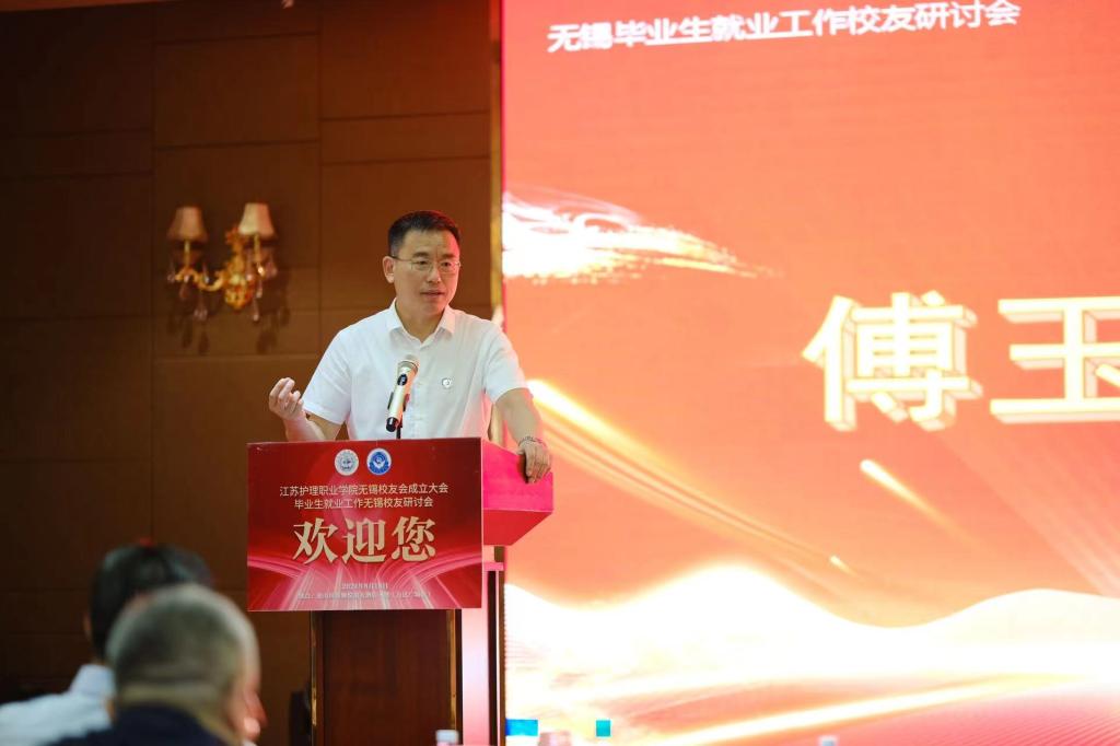 傅玉峰在会上强调,母校是校友永远的心灵故乡,校友是母校流动的金色名片。他希望无锡校友会以“服务校友、服务学校、服务 社会”为己任,干出成绩,把无锡校友会建设成向社会展示母校办学成果、传承学校文化、反映苏护良好精神风貌的“新窗口”;希望无锡校友会加强自身建设,遵纪守法,不谋商业私利,广泛凝聚校友,用心服务校友需求,精心开展校友活动,传递母校暖心关怀,生动讲好苏护和校友故事,把无锡校友会建设成深受校友喜爱的“连心桥”;希望无锡校友会密切联系校友,团结带领广大无锡校友与母校共谋发展,在人才培养、产教融合、招生就业等领域持续扩大合作共赢空间,把无锡校友会建设成支撑母校高质量发展的“助推器”。