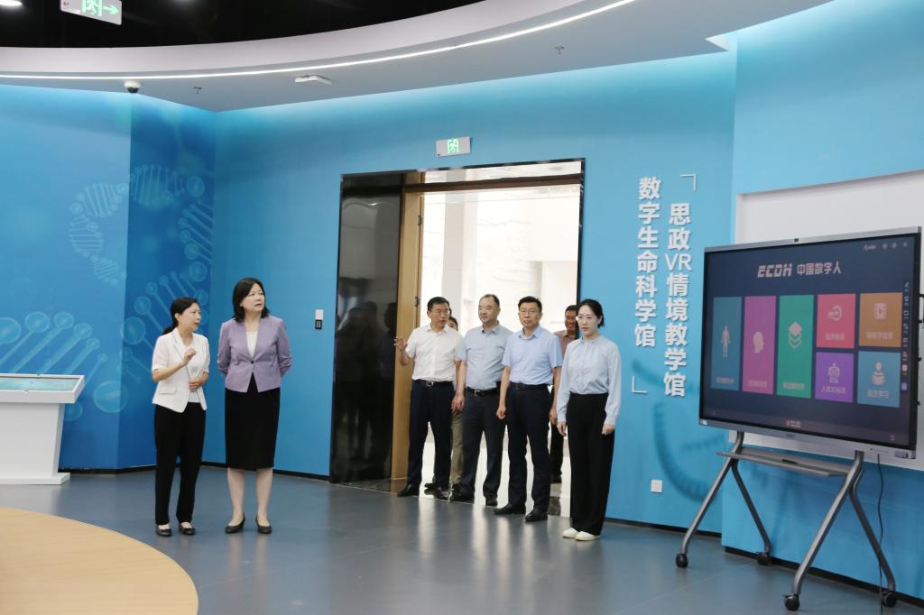 会前,胡培红一行到智慧医护实训基地调研,并观看了学校宣传片。