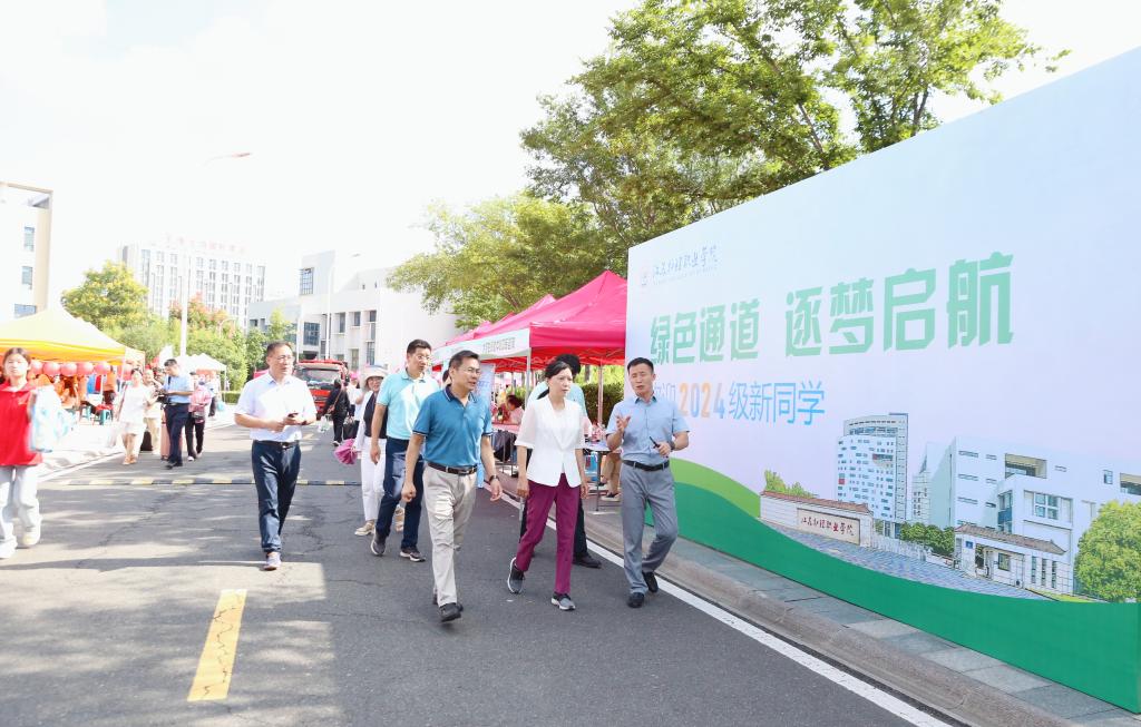 在迎新服务现场,校党委书记陆志群,党委副书记、院长傅玉峰,党委副书记胡海员等校领导现场指导迎新工作,与前来报到的新生和家长亲切交谈,向老师们询问新生到校状况以及手续办理等情况,向忙碌工作的迎新志愿者们表达慰问,并对新同学的到来表示欢迎、祝福。校领导强调,各部门要密切配合,协同工作,及时了解学生诉求,为新生做好各项保障服务,确保新生安全、有序入学。