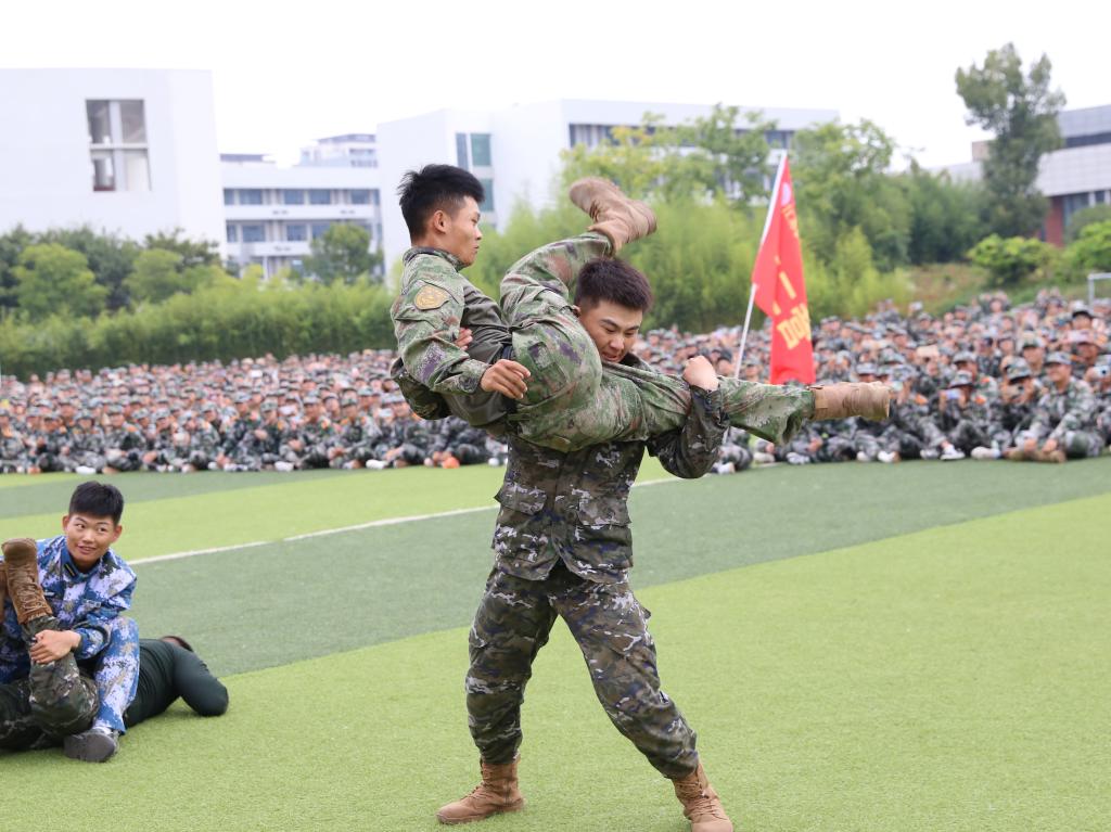 在军事训练成果汇报环节,各方阵依次经过主席台接受检阅。同学们士气高昂、意气风发、眼神坚毅、步履铿锵,嘹亮的口号气势如虹,矫健的步伐整齐划一,尽显新时代大学生斗志昂扬的拼搏豪情和奋发有为的青春力量。擒敌拳、倒功、散打等精彩的特色项目展示,赢得全场阵阵热烈的掌声和喝彩声。