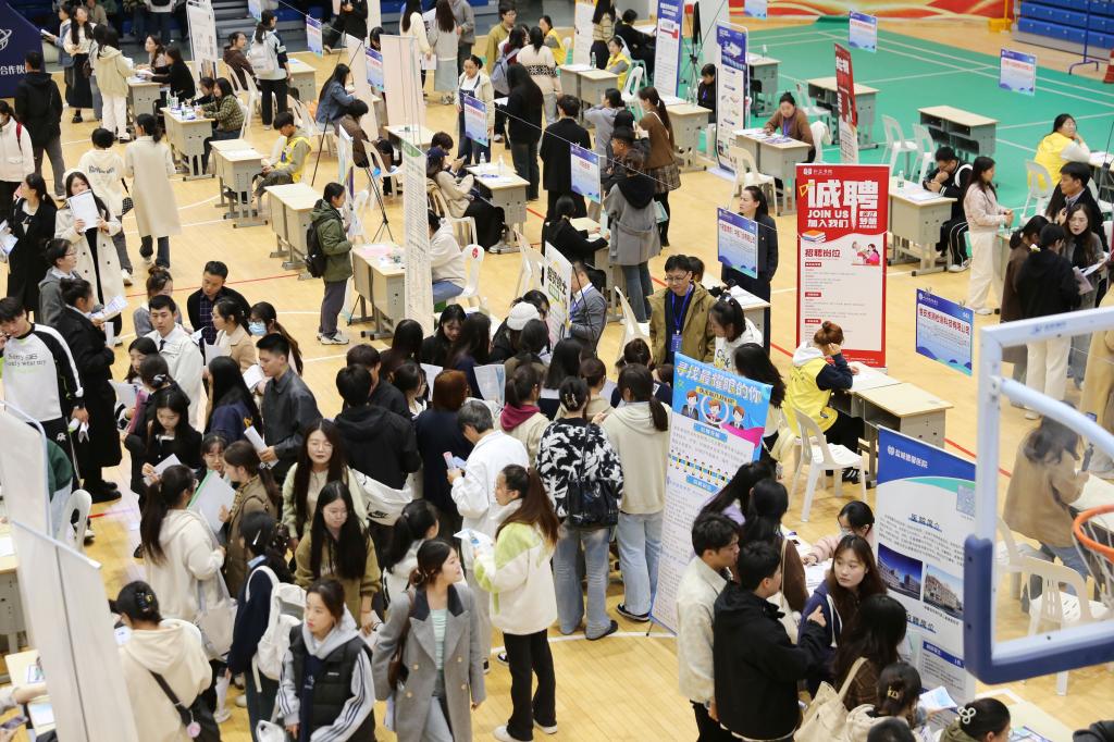 11月1日,beat365中国官方网站2025届毕业生秋季校园招聘会在学校体育馆举行,招聘会以“服务新质生产力 校地强链促就业”为主题,来自南京、苏州、上海等地75家用人单位到场,提供护理、药学、医美、康复等1276个招聘岗位。