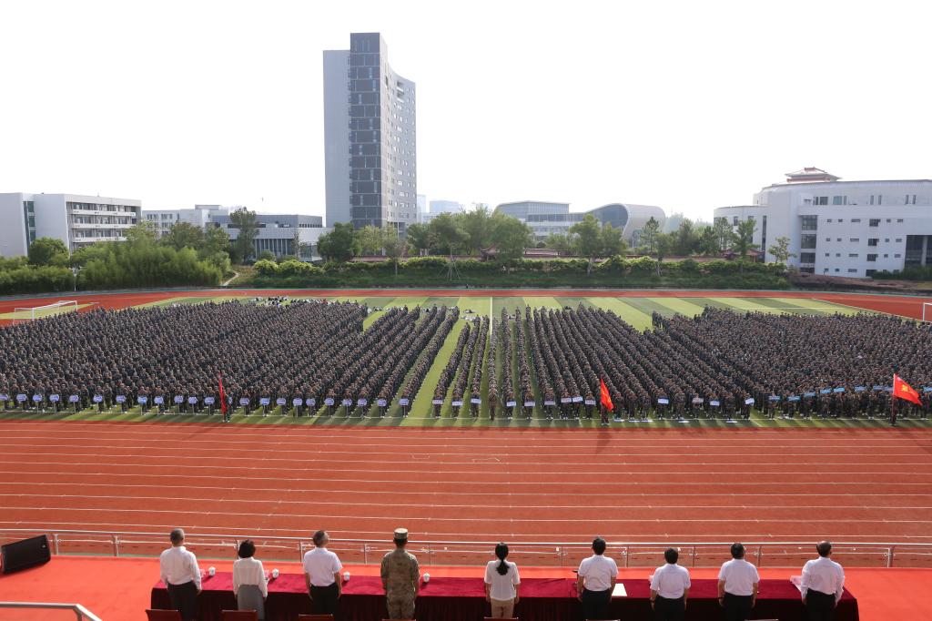 9月10日上午,beat3652025级新生开学典礼暨军训动员大会在科技路校区田径场隆重举行。校党委书记陆志群授军训旅旗并宣布军事训练开始。党委副书记、院长傅玉峰为全体新生讲授“开学第一课”,并作军训动员。校领导班子成员,全体教官,各部门、二级学院负责人,全体辅导员和新生班班主任,以及2025级全体同学参加。党委副书记陈鸣鸣主持开学典礼。