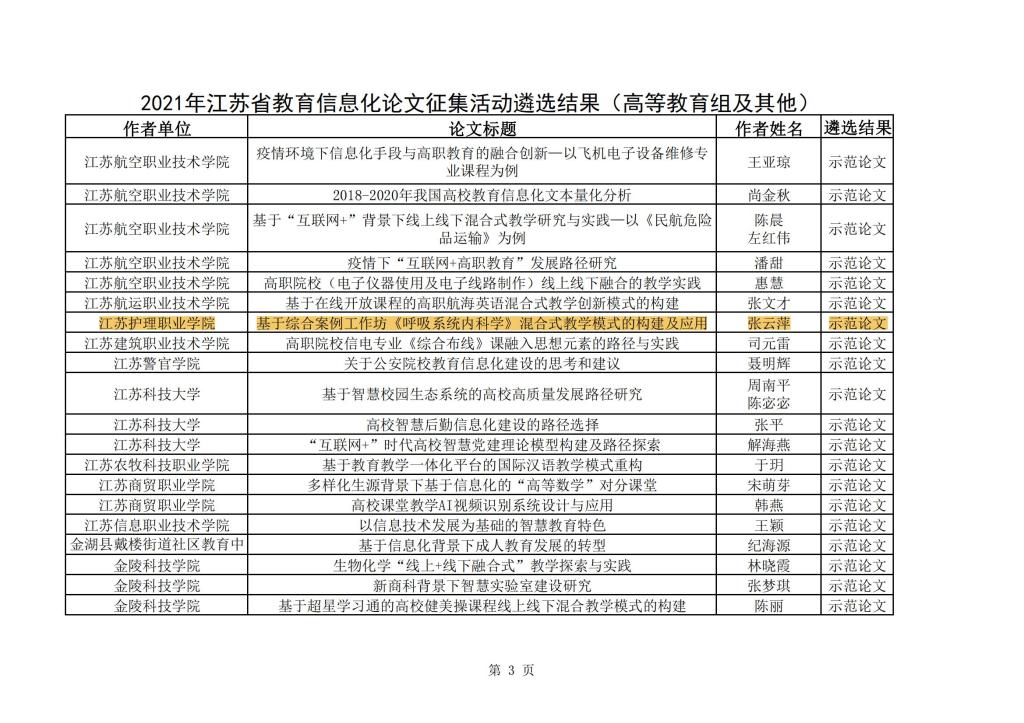 近日,2021年江苏省教育信息化论文征集活动的遴选工作已经圆满结束。根据苏教信办〔2022〕4号精神,本次论文征集活动收到全省投稿论文共10881篇。经专家遴选并公示后,共产生获奖论文1721篇,其中高等教育组及其他197篇。beat365护理与助产学院张云萍老师所属团队获得高等教育组示范论文,这是beat365教改研究项目的成果之一,也是护理与助产学院教学团队与淮安一院呼吸与危重医学科共同开展的研究成果。