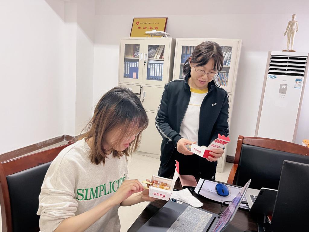 同学们将各种水果一一串好后沾上熬制好的糖稀,待冷却后再裹上一层糯米纸,放在精致的礼盒里,一盒冰糖葫芦就“出炉”了。糖葫芦色泽鲜艳、晶莹剔透,很是诱人。师生共享中华传统美食,现场欢声笑语,一片祥和。最后同学们给学院的女老师、宿管阿姨、食堂阿姨和保洁阿姨送去了这自制的美味,向她们致谢,送去“甜蜜蜜”的节日祝福。 本次活动丰富了校园文化生活,弘扬了传统文化。活动以独立自主劳动、分享成果、传递感恩的形式纪念三八国际劳动妇女节,展现了当代女大学生积极向上的风貌,意义非凡。