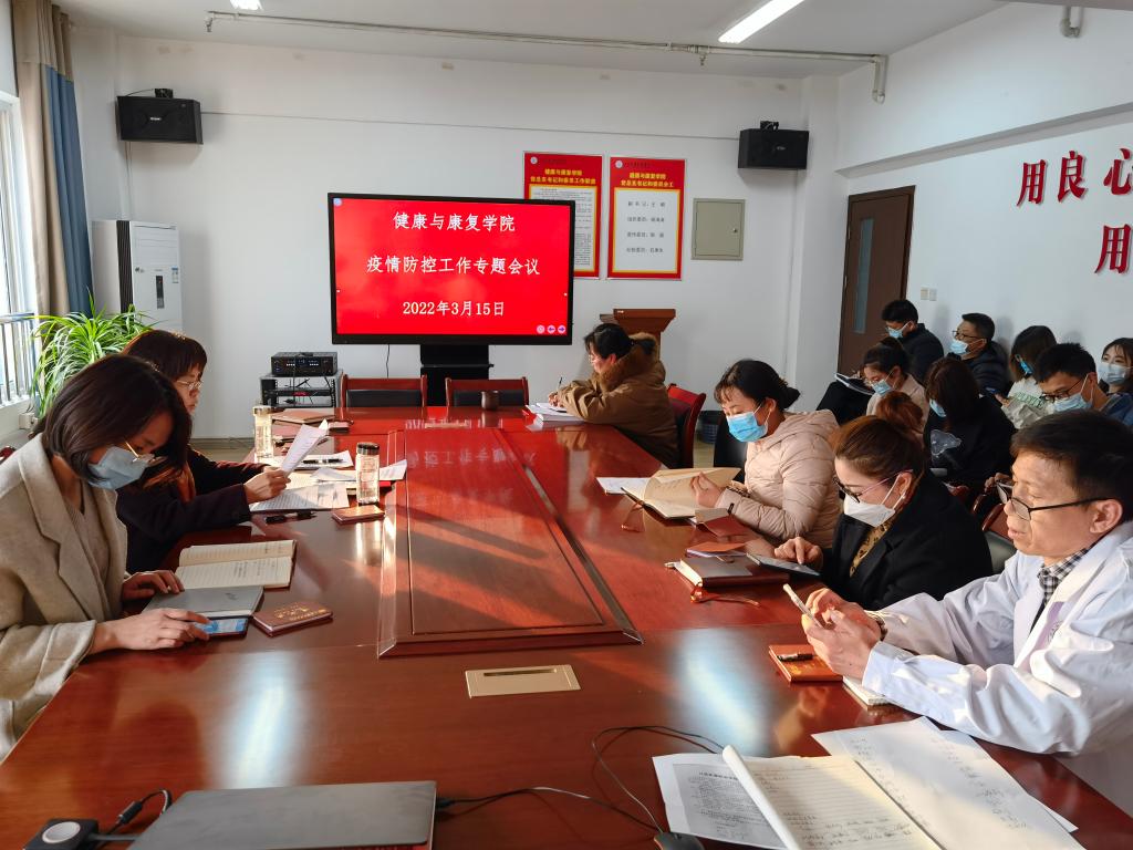 为了更好做应对新一轮新冠肺炎疫情,守护校园净土,3月16日下午健康与康复学院在beat365黄河路校区天医星大校场·康复楼12楼会议室召开全体教职工会议。会议由健康与康复学院院长薛彩萍主持。