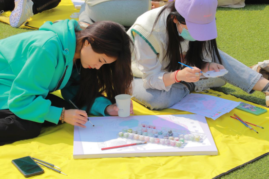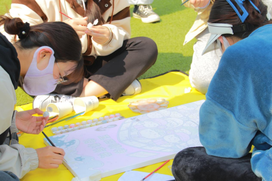 操场上,同学们以宿舍为单位,席地而坐,用心地描绘着一幅幅作品,以鲜明的主题和绚烂的色彩展示出逆行者们的勇敢和担当,定格抗疫最美瞬间。参加绘画的同学表示,希望能通过这样的方式传递抗疫正能量,并展现抗疫有我的青年担当。