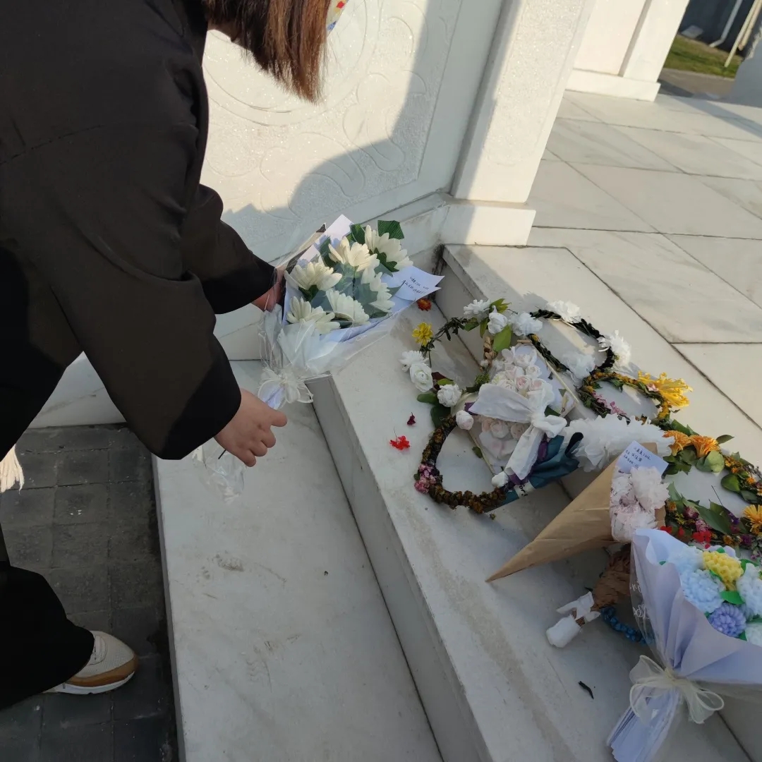 4月5日下午,同学们在国旗下敬献自制的花环花束,默哀先烈,并开展了网上为英烈敬献献花活动。