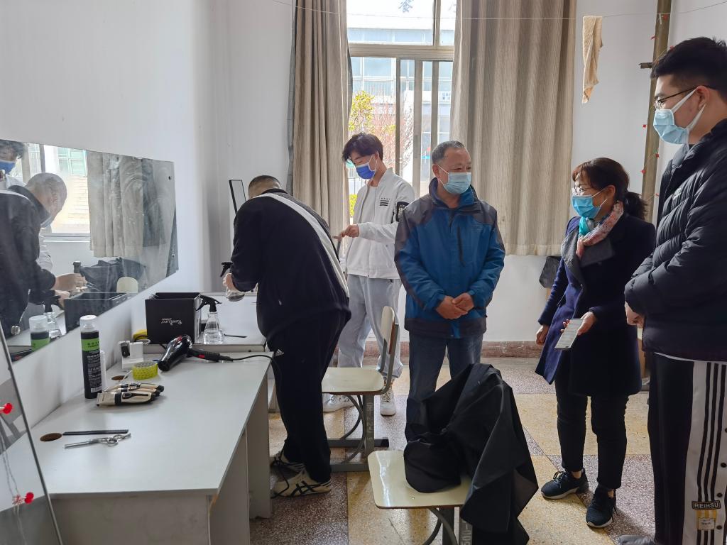 王朝主任和杨海涛秘书长关心了志愿者的排班、理发工具数量、场所通风消毒等细节问题。