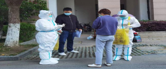 4月16号,老师们被分配到了苏州相城区黄埭镇的春申、长康、斜桥和三埂四个社区核酸采样点。清晨4点起床,简单洗漱后就出发了,到了社区后,化整为零,一个人就是一个点,一个人就是一面旗帜,穿好大白,做好防护工作,立即投入当天的采样工作,配合当地社区,完成17万多居民的核酸采集工作。