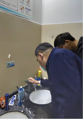 杨铤主任在看到宿舍水池存在一定黄垢现象后,直接给学生做起了示范,他拿起钢丝球反复擦拭,手把手的教导学生如何使用清洁工具清除水池、厕所、地面等地区的污渍,并语重心长的叮嘱学生,疫情下,宿舍是同学们生活的主要场所,确保宿舍“颜值”,才能把牢疫情防控线。他指出,要在日常生活中做好每天的卫生清洁和消杀工作,才能营造舒适健康的居住环境,为校园防疫打好基础。