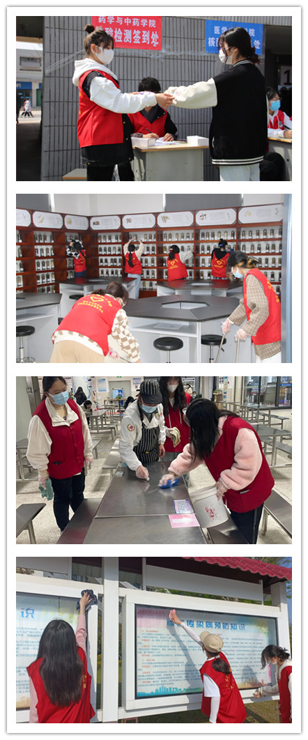 凝聚志愿服务力量,共筑疫情防控屏障。第一时间组建疫情防控储备志愿者队伍,发动团员青年投身抗疫主战场,在核酸检测现场、食堂秩序引导、校园宣传劝导等防疫岗位上开展常态化服务。