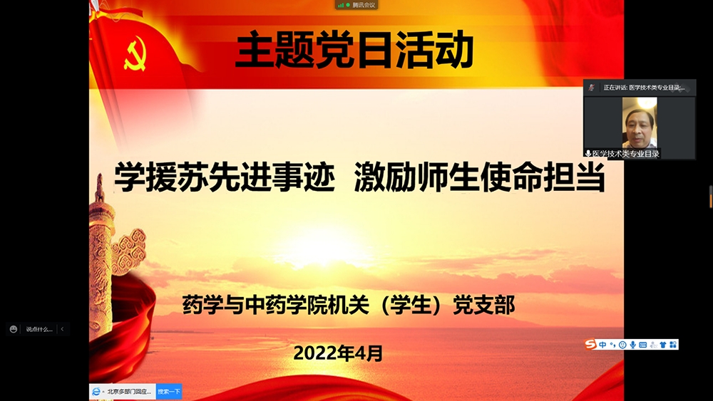 为进一步增强党组织的凝聚力和战斗力,引导师生党员坚定理想信念,充分发挥全体师生党员在教育教学、疫情防控中的先锋模范作用,药学与中药学院机关(学生)党支部开展“学习支援苏州先进事迹 激励师生党员使命担当”主题党日活动。