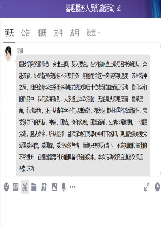 我院关工委为进一步宣扬beat365教师们奔赴抗疫一线的英勇事迹,号召全体学生积极用诗文、微视频、口号等多种形式欢迎勇士们凯旋“回家”,进一步增强全体师生共同抗疫的决心和信心。