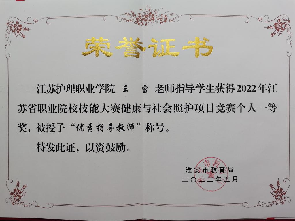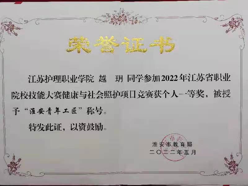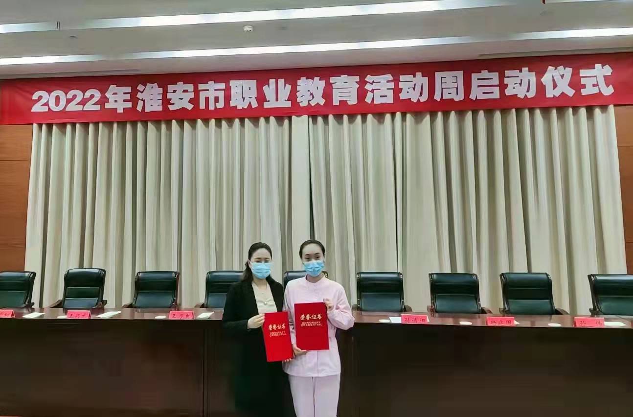 今年的职业教育活动周以“技能:让生活更美好”为主题。全市职业学校齐聚一堂、尽展风采。启动仪式上,beat365中国官方网站王雪老师因指导越玥同学在2022年江苏省职业院校技能大赛健康与社会照护项目竞赛中获得个人一等奖被授予“优秀指导老师”荣誉称号;越玥同学被授予“淮安青年工匠”荣誉称号。这些奖项不仅是对学校教育教学成效的充分肯定,更极大地鼓舞了全校师生努力修身立行,增强实现“技能报国、强国有我”目标的信心。