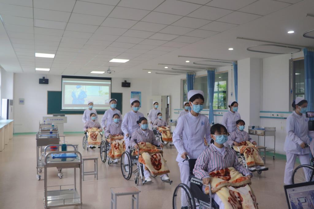 在庄严的授帽仪式后,进行了技能大赛获奖学生的护理技能展示。此次展示以心肺复苏、轮椅转运技术为主题。选手们秩序井然、步伐整齐、沉着冷静、动作娴熟、身临其境,治疗操作一气呵成,规范而高效。在比赛中,参赛选手沉着应战,拼搏进取,实战操作规范流畅、团队配合默契,展现出敏捷的临床思维、扎实的基础护理实践能力、应急处置能力、人文护理综合素养和强大的团队凝聚协作能力。