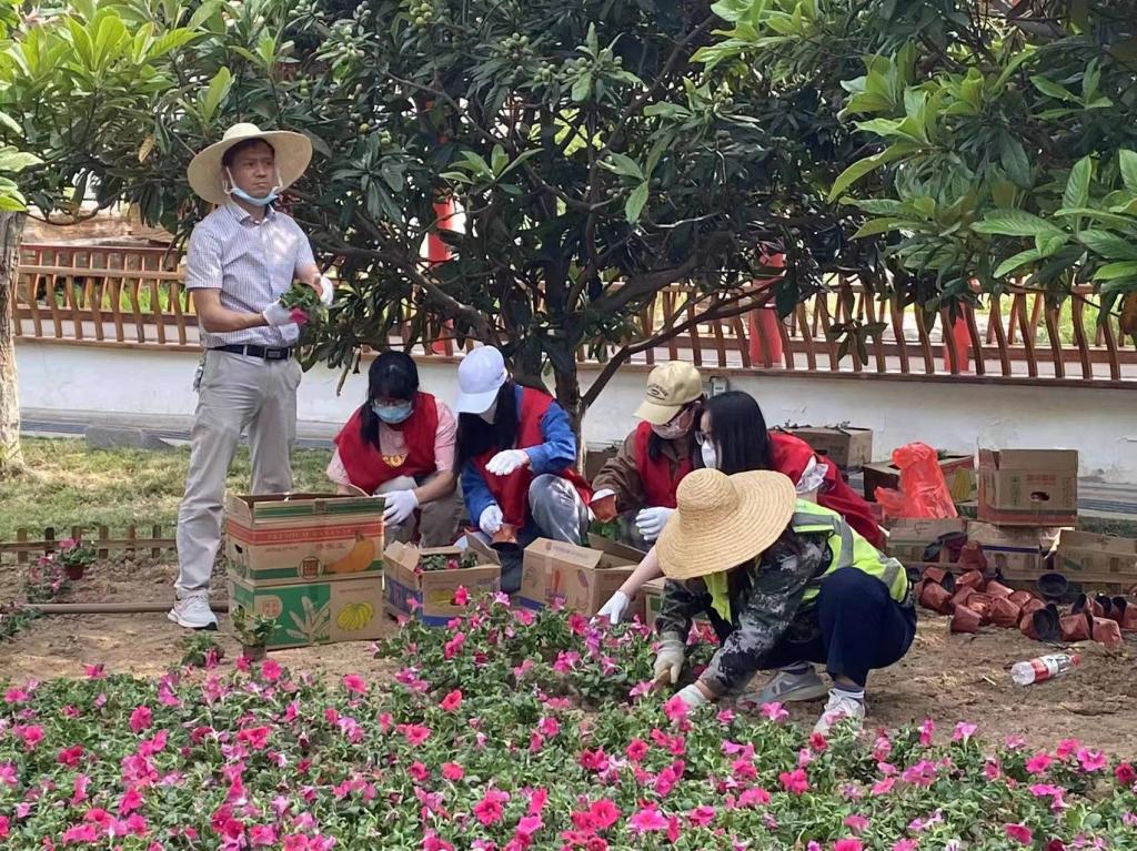 20名学生志愿者积极主动参加义务劳动,在种花现场,他们不言苦,不怕累,在园丁工人师傅手把手地指导下,迅速掌握种花操作技能,有板有眼地进行拆除花盆、挖坑、栽种等工序。一天下来,中央景观区换花区域就种满了矮牵牛、满天星、石竹等多个漂亮花种。看着自己亲手种下的劳动成果逐渐扮靓景观区域,同学们喜笑颜开,十分兴奋。
