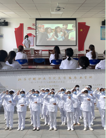 在“青‘悦’读——共读交流会”中,21助产5班赵雅萱领学了《习近平与大学生朋友们》《中国青年运动一百年》两本书中的部分章节,可以见得习近平总书记一直是大学生们亲密的朋友、亲切的导师,时刻与大学生心连心。同学们依次上台分享自己阅读好句、好段、好书的心得,21护理1班的桑蒙蒙同学提到了习近平总书记在北京大学考察时,教导广大青年大学生“既多读有字之书,也多读无字之书”,在校期间的主要任务是努力学好科学文化知识,打下扎实的知识基础,这是读有字之书,但与此同时,也要多读无字之书,通过各类实践、实习、实训课,逐步积累人生经验和社会知识。最后,全体同学移步医学生誓词墙,面对鲜红的团旗共唱团歌并重温入团誓词。各位同学激情饱满,庄严肃穆,体现了护助院学子意气风发的精神风貌。