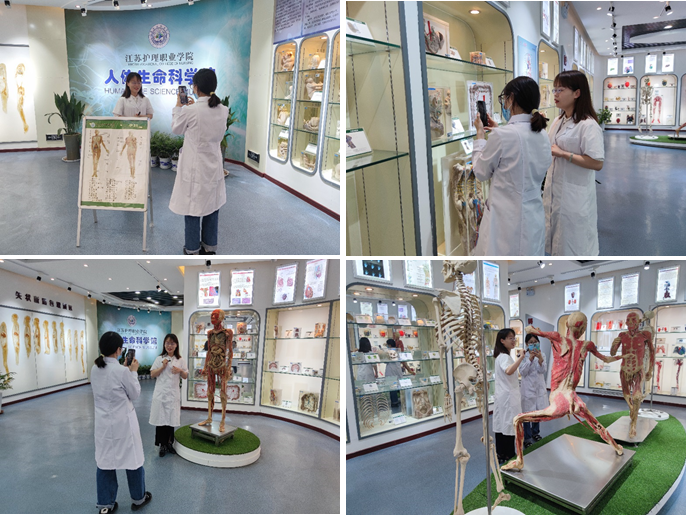 本次线上科普课堂由陈培老师负责主讲。首先,陈老师带领学生们进入了“胚胎展区”,讲解了各个时间段的胚胎标本,让学生们直观的了解了胚胎发育的全过程。接着在陈老师的带领下学生们走进了“人体包埋断层区”,他们初步认识到人体断面解剖是医学影像学的重要基础。随后她带领学生们走进了“人体塑化及管道铸型标本展区”,向同学们清楚的展示了人体体腔内各个脏器及其毗邻关系和人体血管、神经、淋巴结的分布情况。最后学生们进入了“运动系统展区和消化呼吸展区”,学习了新冠疫苗的肌注处——三角肌、男女骨盆的区别、食物消化吸收、吸烟及被动吸烟对人体肺组织的伤害等内容。