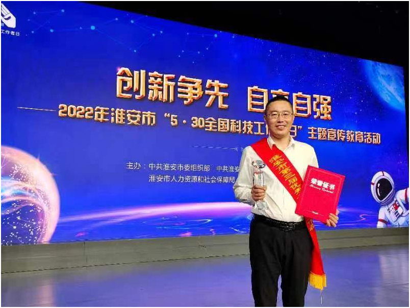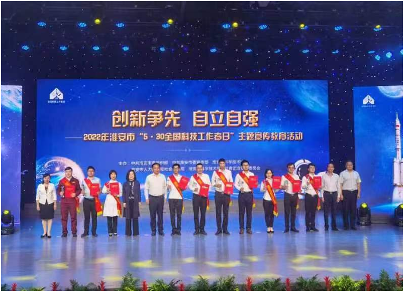 为庆祝第六个“5·30全国科技工作者日”,5月28日上午,“淮安市2022年“5·30全国科技工作者日”主题宣传教育活动暨第三届淮安市青年科技奖在淮安市广播电视台演播大厅举行。beat365教师再次斩获该奖项,张玉领老师喜获“优秀青年科技工作者”称号。