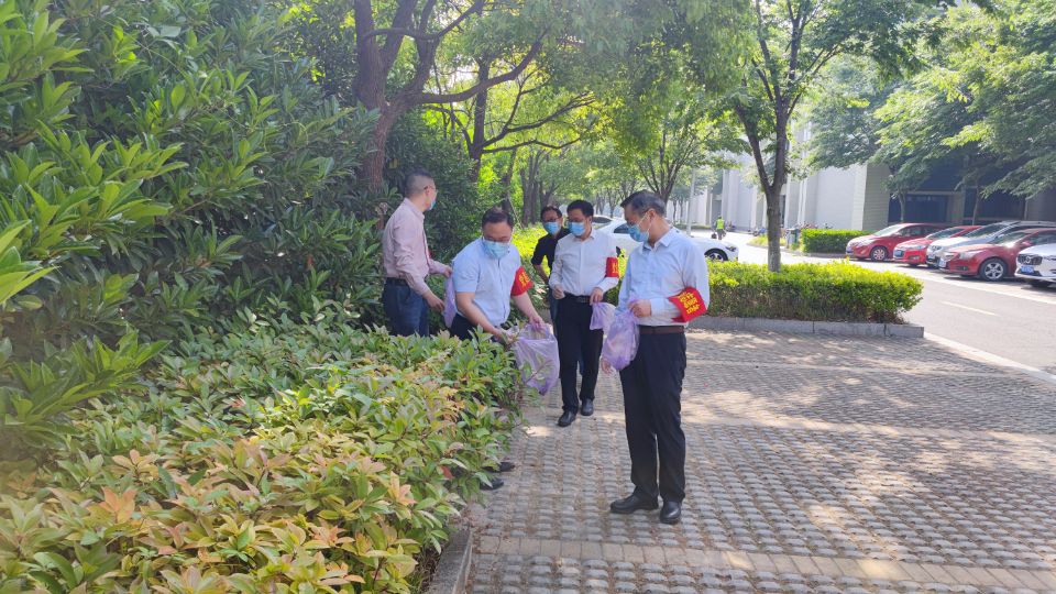为迎接省级文明校园创建考评,助力文明校园创建工作,营造更加整洁优美的校园环境,充分发挥党员的先锋模范作用,弘扬志愿服务精神,5月20日上午,机关党委组织开展了“党员志愿服务 助力文明创建”主题党日活动。校党委副书记胡海员、党委委员、常务副院长陈鸣鸣等党员领导干部带头参加活动。