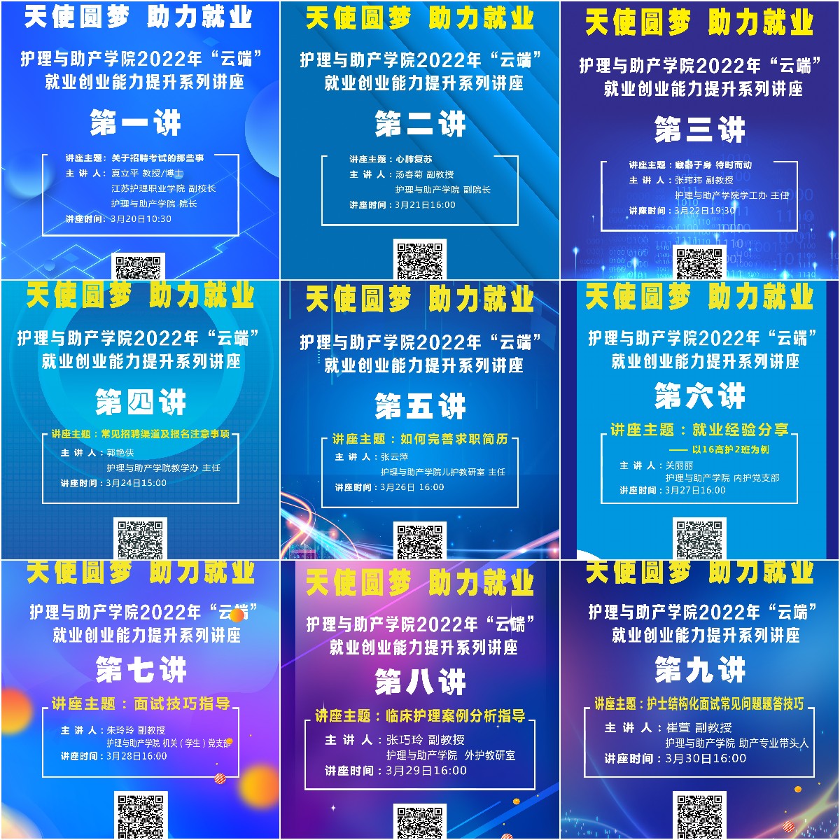 就搭建云端就业桥梁而言,护理与助产学院与医疗卫生单位(如苏州大学附属瑞华医院、宝应县人民医院、泗阳县人民医院等)共同组织开展了30余场“线上”云招聘。在这些线上招聘会中,学院毕业生不出校园便可享受“线上笔试”、“线上面试”和“线上签约”等一条龙服务,完成高质量就业。