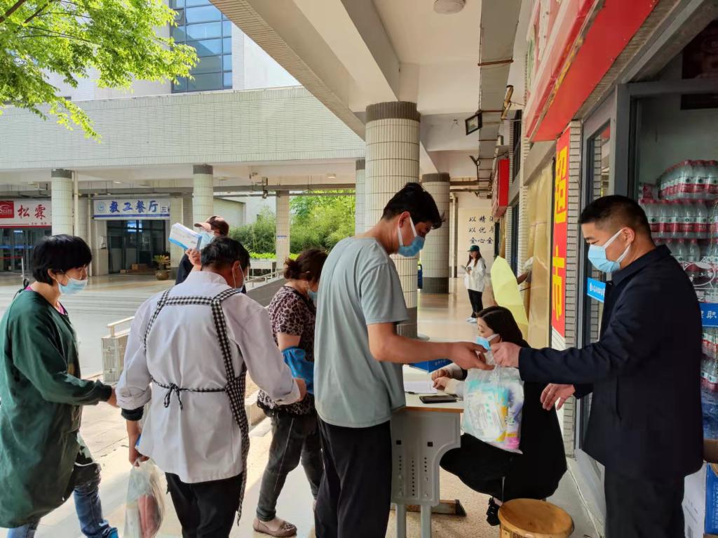 (五一期间,后勤保障处为外包服务人员免费发放生活日用品)