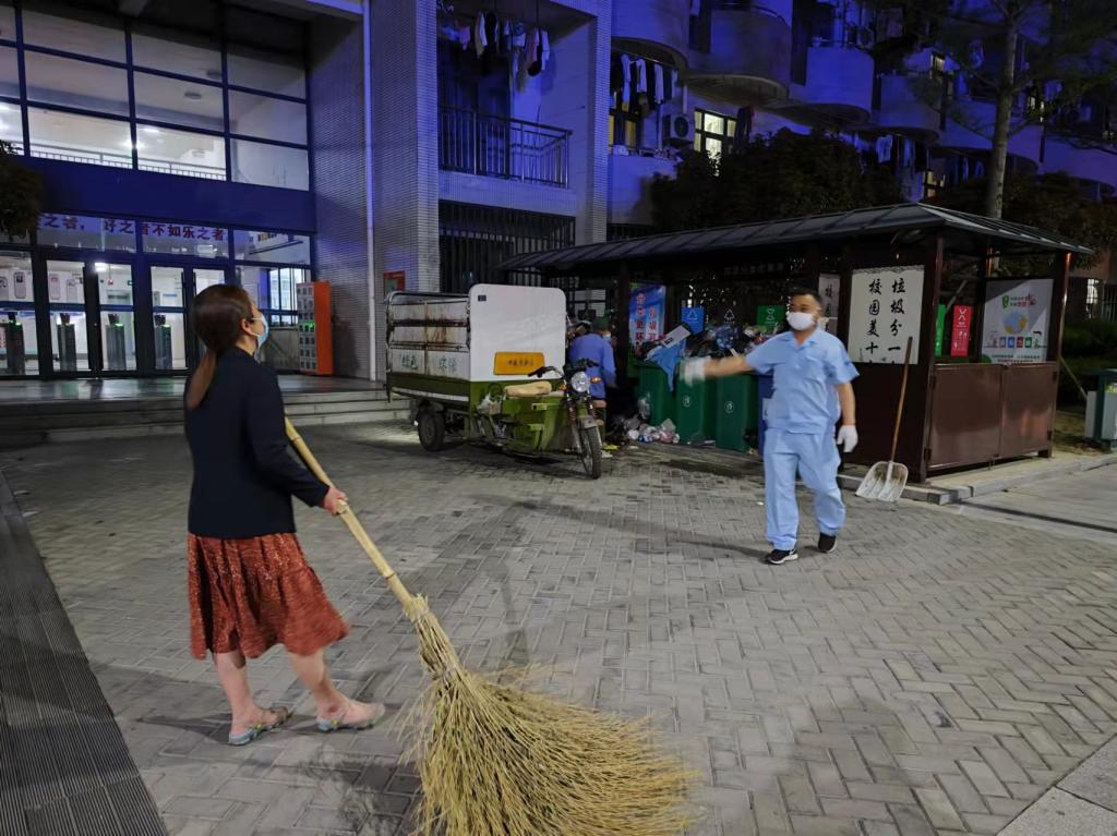 (4月11日夜,吴开洪带领他的团队紧急清运校园垃圾)