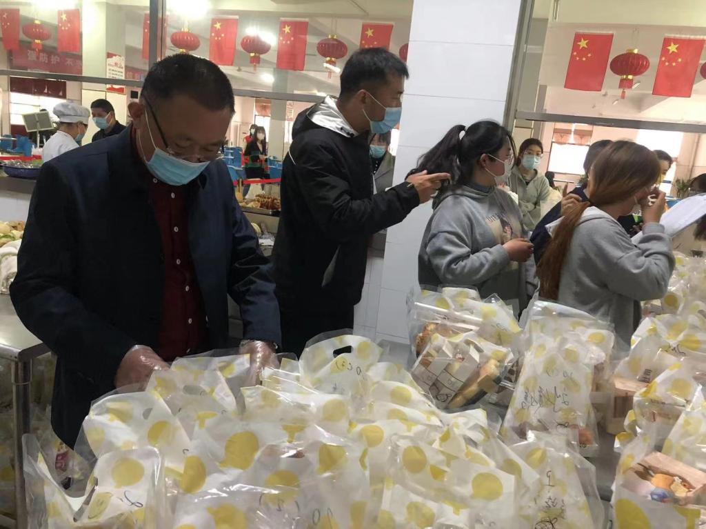 (4月14日晚上,叶玉虎在黄河路校区食堂给学生发放面包现场)