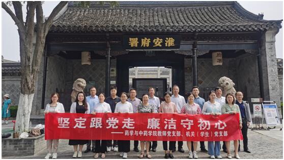 为落实2022年校党委(扩大)会和全面从严治党工作会议要求,加强对党员干部党风廉政警示教育和教师的师德师风教育,促进学校高质量发展,药学与中药学院教师党支部2022年6月22日,赴江苏省廉政文化教育示范基地——淮安府署,开展“坚定跟党走 廉洁守初心”党风廉政主题党日活动,活动邀请教师党积子参加。