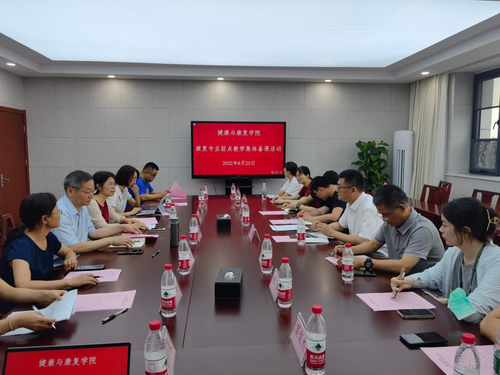 为了进一步提升我院康复治疗技术专业驻点教学质量和人才培养成效,6月23日,健康与康复学院举办了驻点教学集体备课活动。校党委委员、副院长陈鸣鸣,健康与康复学院院长薛彩萍,党总支副书记王朝,副院长邹颖,专业带头人,各教研室、学工负责人,康复教研室全体教师参加了本次活动。镇江市中西医结合医院党委副书记、副院长陶纲,科教部负责人,康复科主任,各治疗组组长等一行9人参加了本次活动。活动由薛彩萍院长主持。