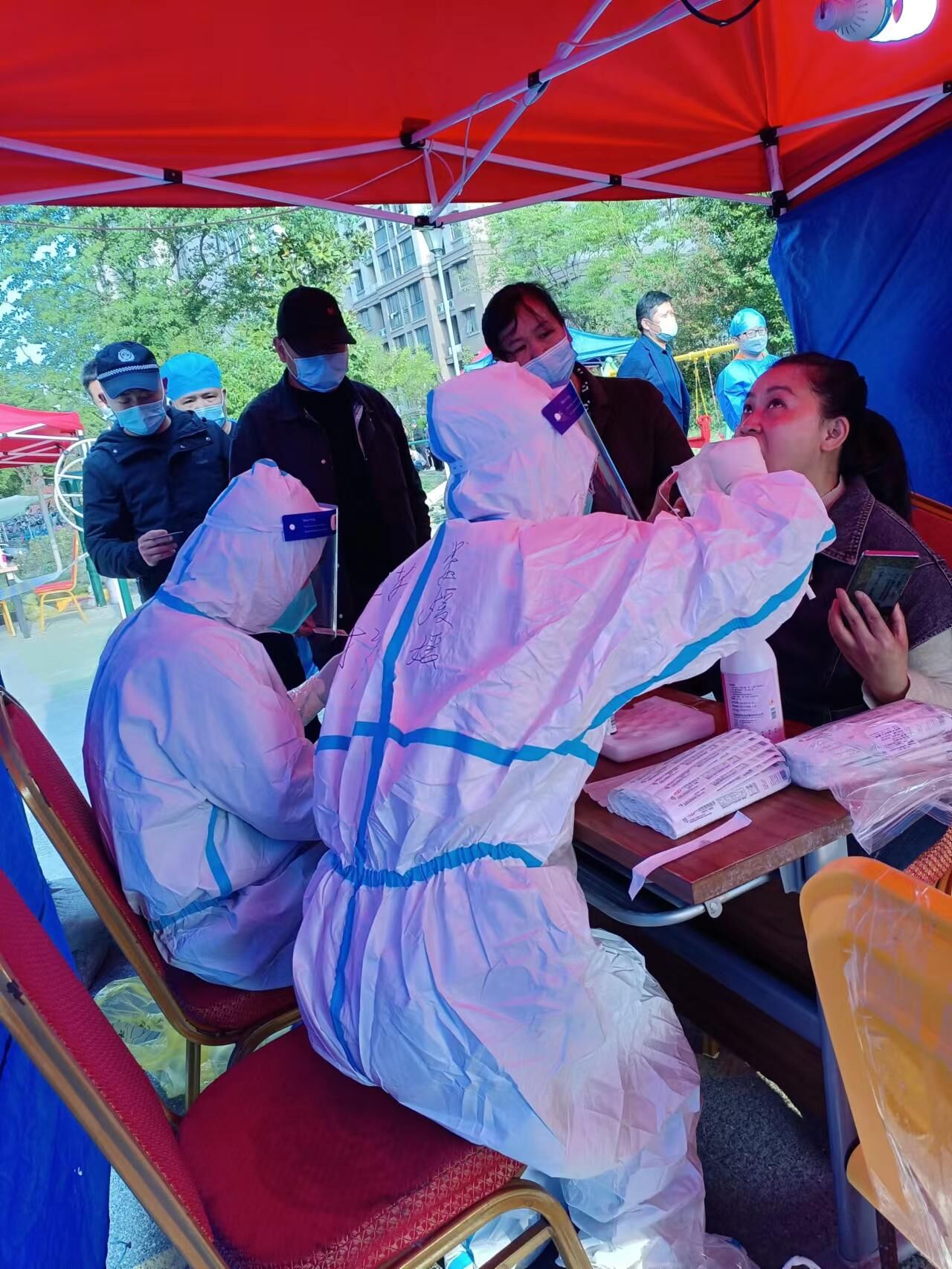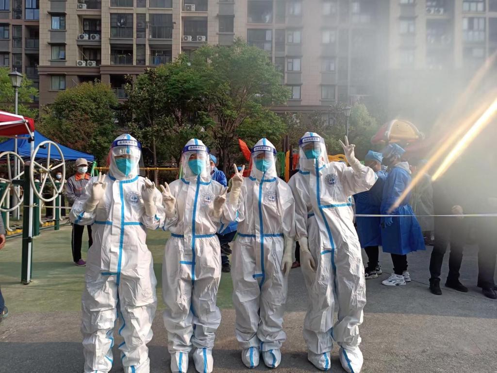 此次6名教师全部是第一次从事核酸检测工作,有4名教师是刚入职不足一年的新教师,但是这都不能阻挡他们支援苏州抗疫的热情和担当。一到苏州,他们便投入了紧张的核酸检测工作。每天他们凌晨三四点钟就起床,连续工作7个小时,每天采样多达700人,不能上厕所不能吃东西,防护服内也是相当的闷热。有时候他们还要乘车几个小时汽车,赶往较远的目的地工作。虽然舟车劳顿,但是他们顾不上休息,一下车便投入工作。工作虽然辛苦,但是他们总是坚持全心投入工作,微笑着面对一拨又一拨群众,只因他们一心只想为当地疫情防控工作尽力。