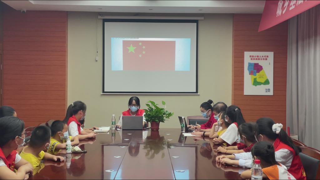 7月14日,志愿者们带领小朋友们学习新安旅行团精神、国旗国歌国徽知多少两个部分的内容,帮助小朋友们加强思想道德教育,增强爱国情怀。志愿者们为参加活动的小朋友开展赠书伴读活动,让学生在书中领悟高尚品格,鼓励小朋友们要从小树立远大的志向、要努力学习练就过硬的本领,做二十一世纪祖国高素质的建设者和接班人,以优异的成绩报效祖国。在活动中,志愿者、小朋友们及其家长共同完成绘画创作,用画笔共绘美好未来。