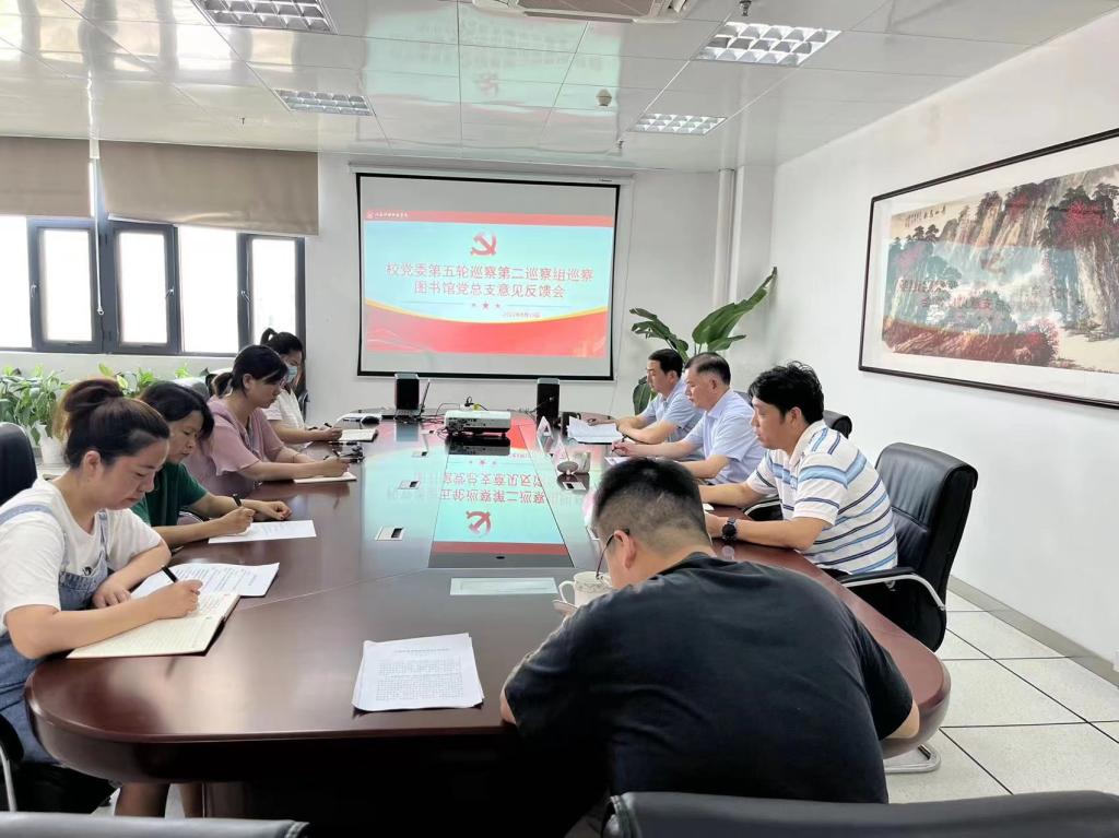 巡察组成员马登宝同志,图书馆党总支班子全体成员以及在淮馆员参加了会议。