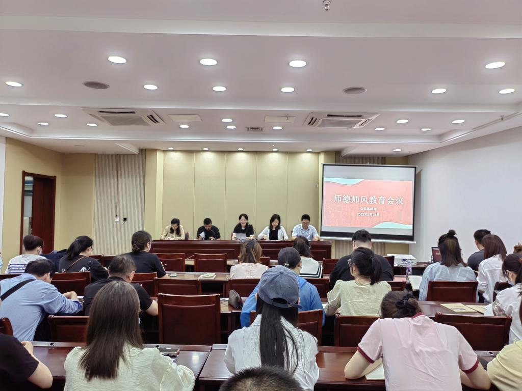 2022年8月27日下午,公共基础部党总支召开了师德师风教育会议。会议由公共基础部党总支书记吴秋霞同志主持,公共基础部全体成员参加了本次会议。