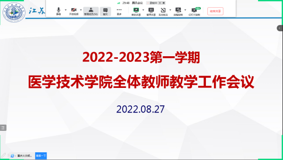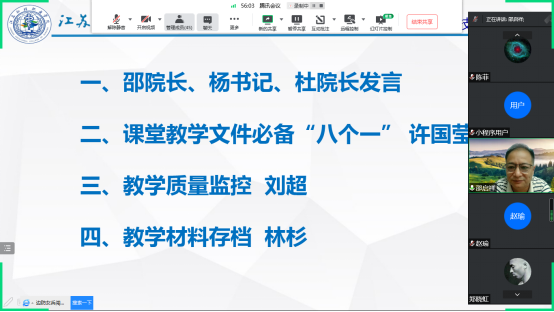 首先许主任介绍了我院专业、师资、课程情况和本次会议流程。接着杜院长传达了学校教学工作会议精神,布置了线上教学工作要求。要求各教研室做好开学前教学准备工作,包括集体备课、完成线上课程调试,要求管理人员参与听课反馈,最后学院形成教学质量分析报告。同时,线上课程结束后对于未返校学生做好一生一策的补课方案。而对于我院兼职教师带教课时较多的问题,杜院长要求各专业要进行具体分析,同时各教研室先内部讨论专业教师担任管理工作课时减免的相关事宜。杜院长还强调,本学期的核心工作是保证教学的中心地位,大家要重视课堂教学质量,做好微课,做好实训基地规划建设等工作。最后邵院长又强调了教学的中心地位,解读了我院的《线上直播教学规范》文件,要求大家重视教学质量,与学生形成良好的互动,融入思政。