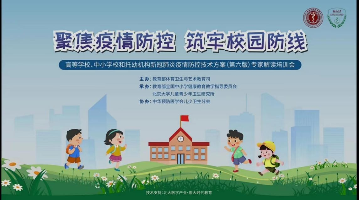 培训会上,华东师范大学体育与健康学院季浏老师对《高等学校新冠肺炎疫情防控技术方案(第六版)》进行全面且详细的解读;中国疾控中心环境与健康相关产品安全所潘力军老师以及上海市浦东新区疾控中心传染病防治与消毒管理科朱渭萍老师通过对学校新冠肺炎疫情防控的实践与探索阐述了高等学校新冠肺炎疫情防控的一系列具体措施;武汉市疾控中心消毒与病媒生物防制所的梁建生老师对日常预防性消毒方法及卫生清洁等注意事项进行强调;针对疫情防控期间人际关系和学生学习问题,北京回龙观医院临床心理科刘华清老师进行了疫情防控心理疏导的讲座。