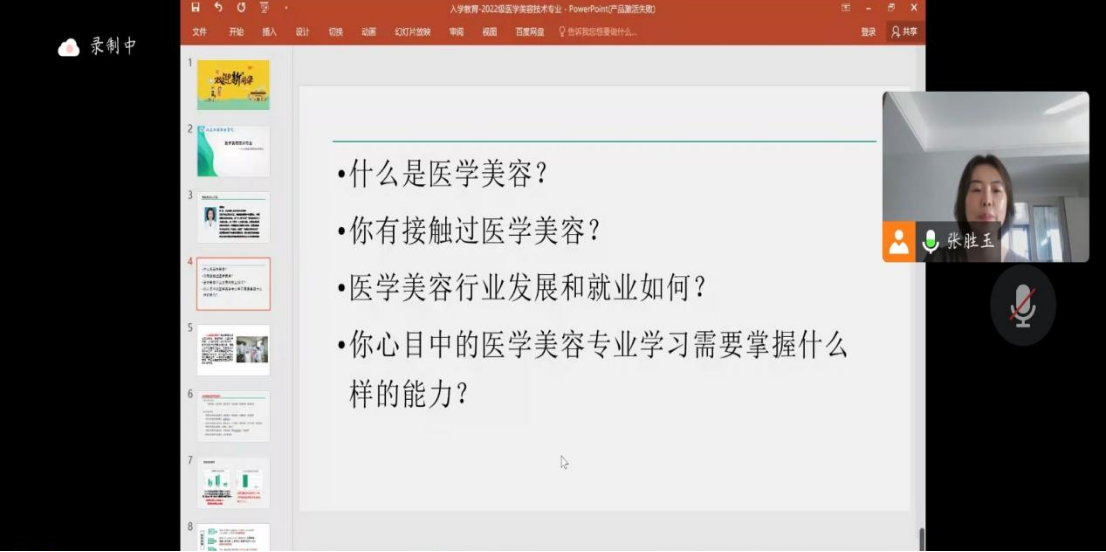 我院医学美容技术专业负责人张胜玉老师为学院医学美容技术专业新生展开详细的职业介绍和专业发展前景。